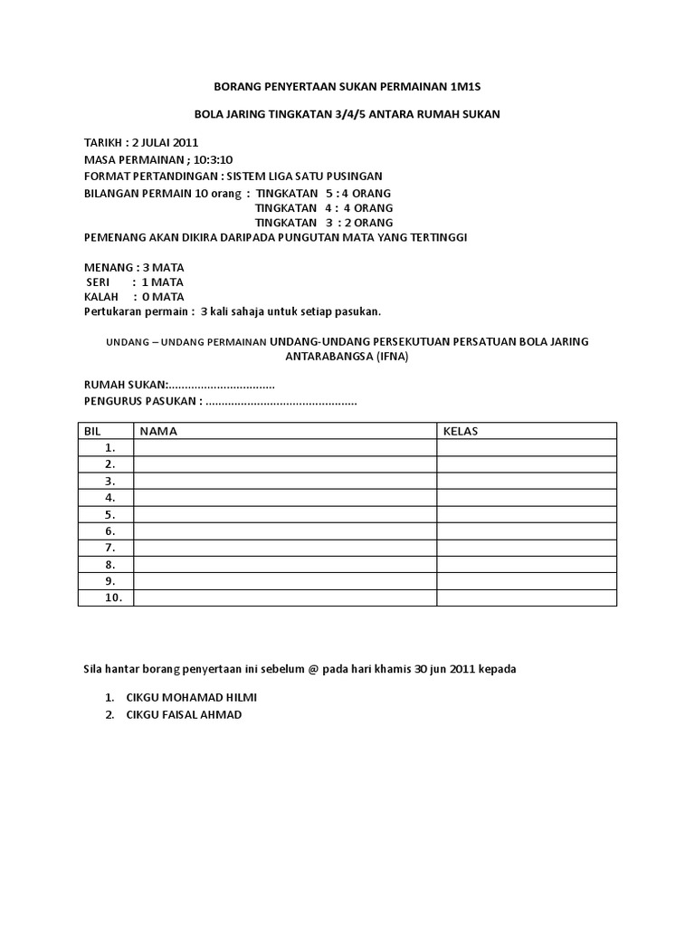 Borang Penyertaan Sukan Permainan 1m1s Bola Jaring Pdf