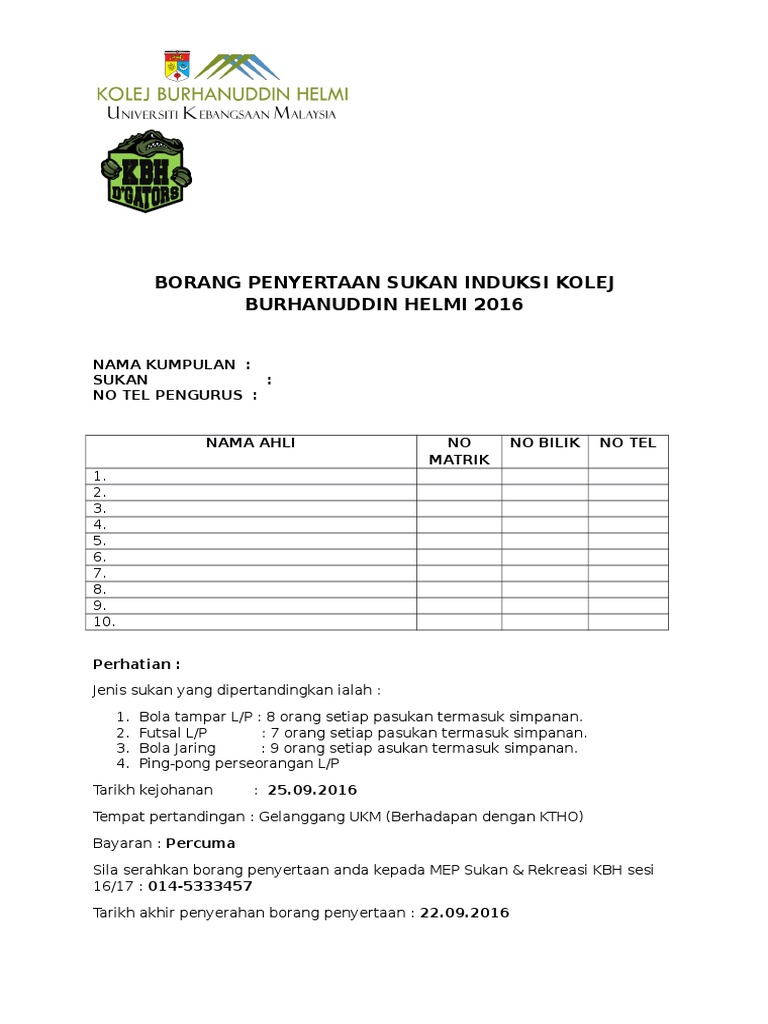 Contoh Menulis Borang Penyertaan Untuk Sukan